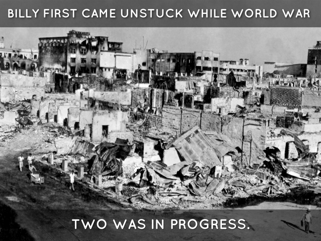 BILLY PILGRIM HAS COME UNSTUCK IN TIME.
