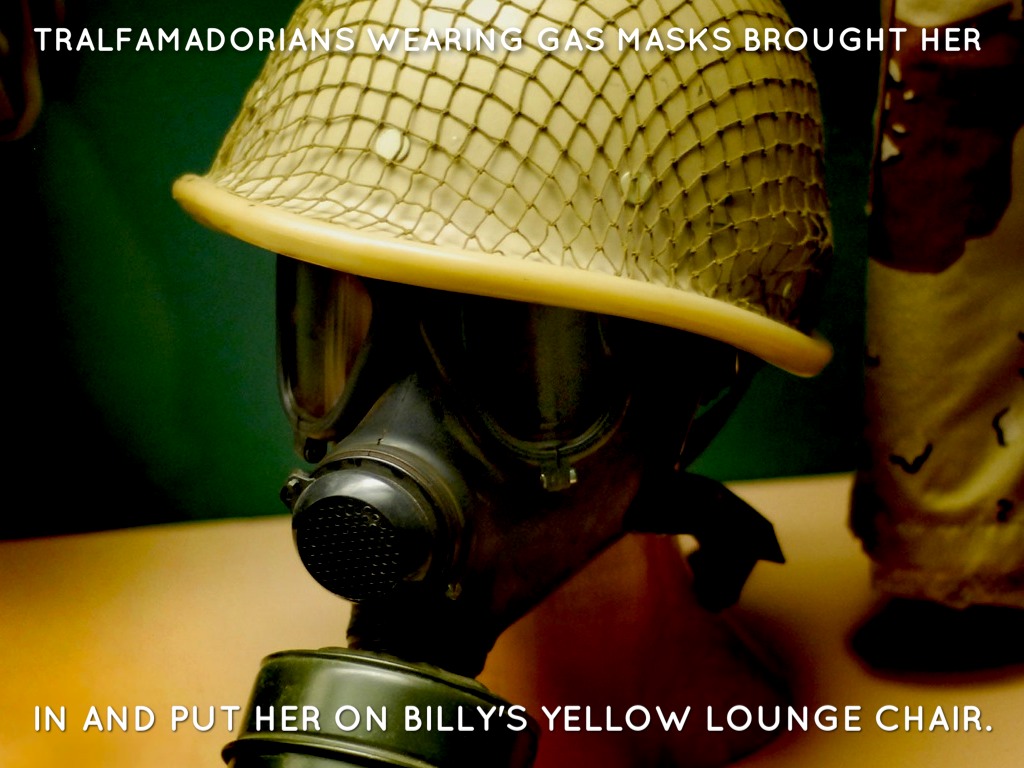 TRALFAMADORIANS WEARING GAS MASKS BROUGHT HER