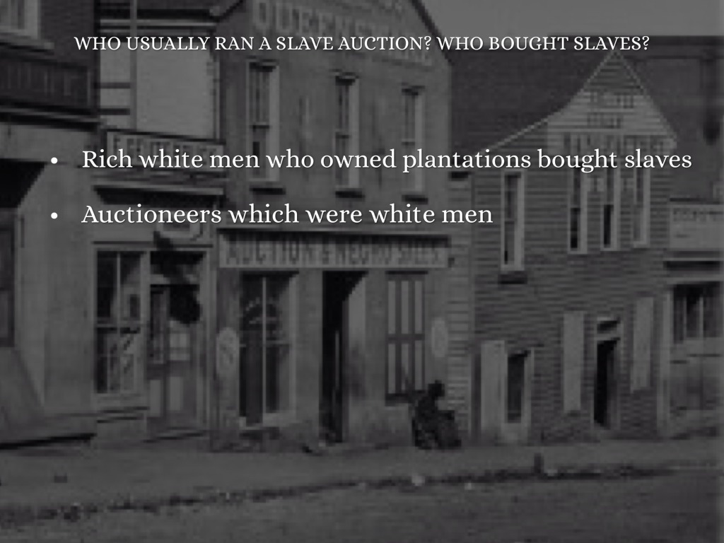 WHO USUALLY RAN A SLAVE AUCTION? WHO BOUGHT SLAVES?
