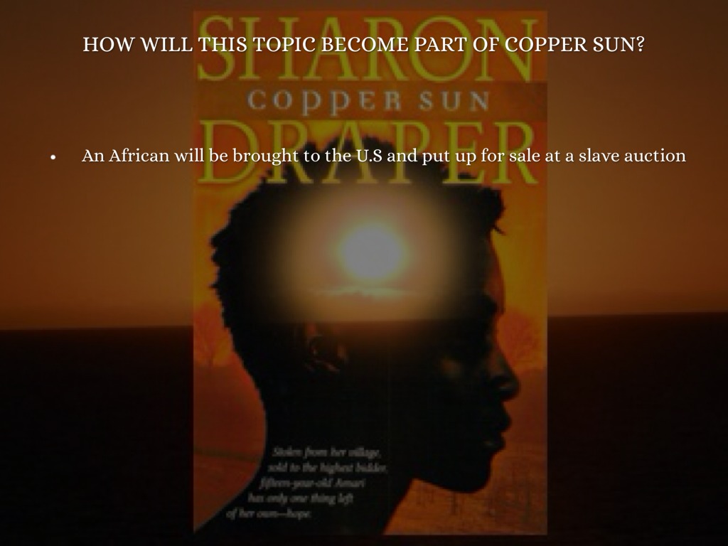 • An African will be brought to the U.S and put up for sale at a slave auction