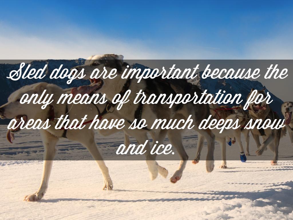Sled dogs are important because the only means of transportation for areas that have so much deeps snow and ice.