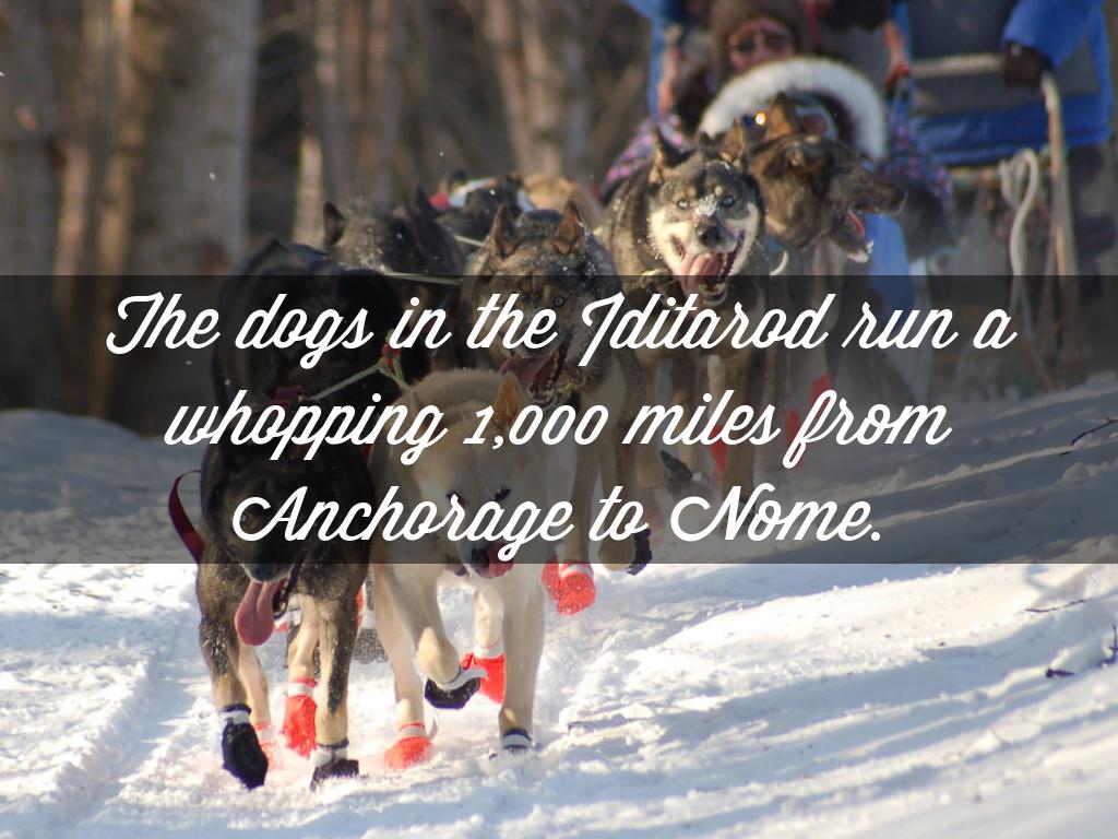The dogs in the Iditarod run a whopping 1,000 miles from Anchorage to Nome.