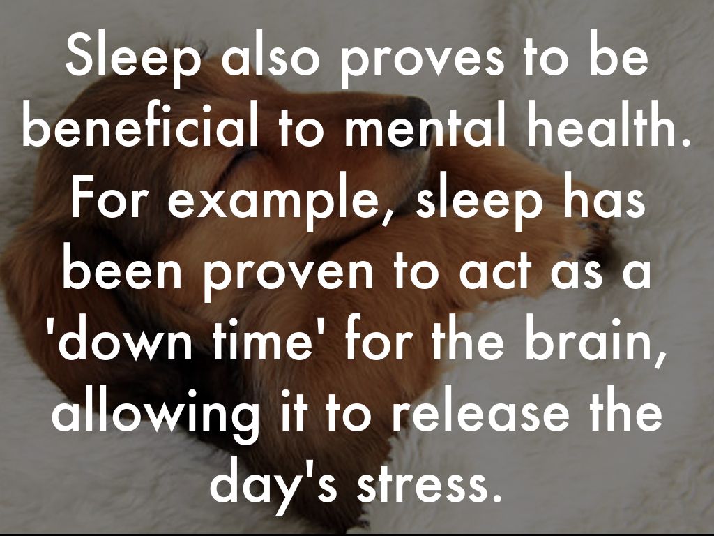 Sleep also proves to be beneficial to mental health. For example, sleep has been proven to act as a 'down time' for the brain, allowing it to release the day's stress.