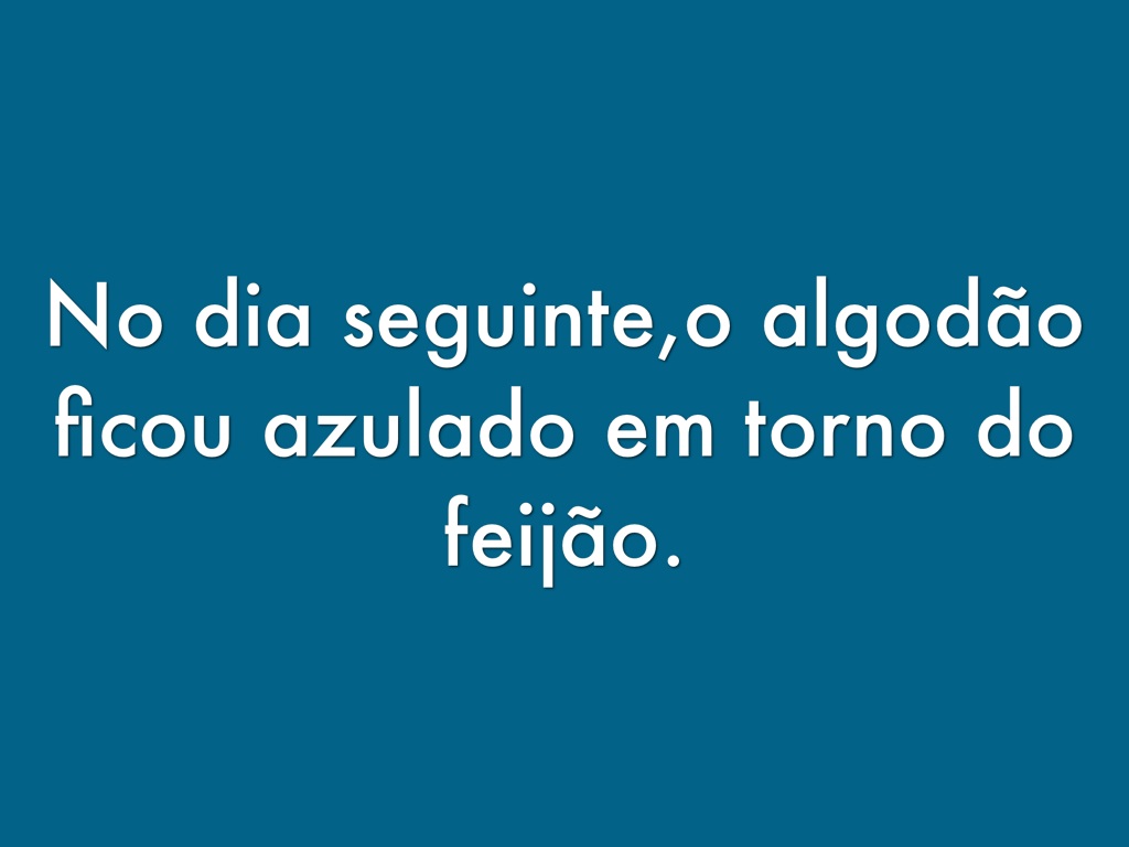 No dia seguinte,o algodão ficou azulado em torno do feijão.