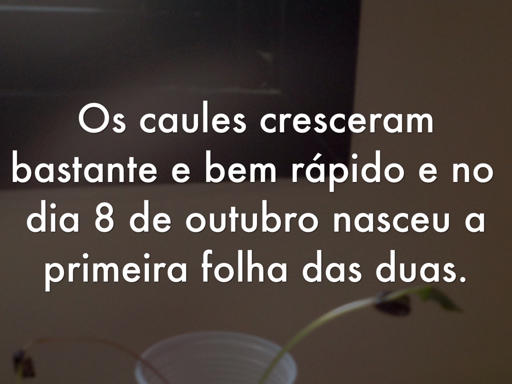 Os caules cresceram bastante e bem rápido e no dia 8 de outubro nasceu a primeira folha das duas.