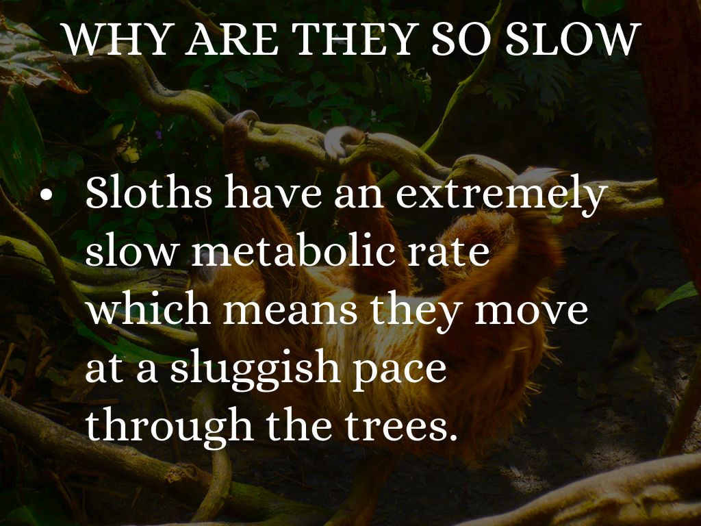 Sloths have an extremely slow metabolic rate which means they move at a sluggish pace through the trees.