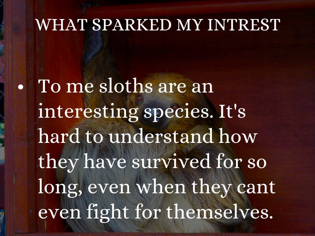 To me sloths are an interesting species. It's hard to understand how they have survived for so long, even when they cant even fight for themselves.