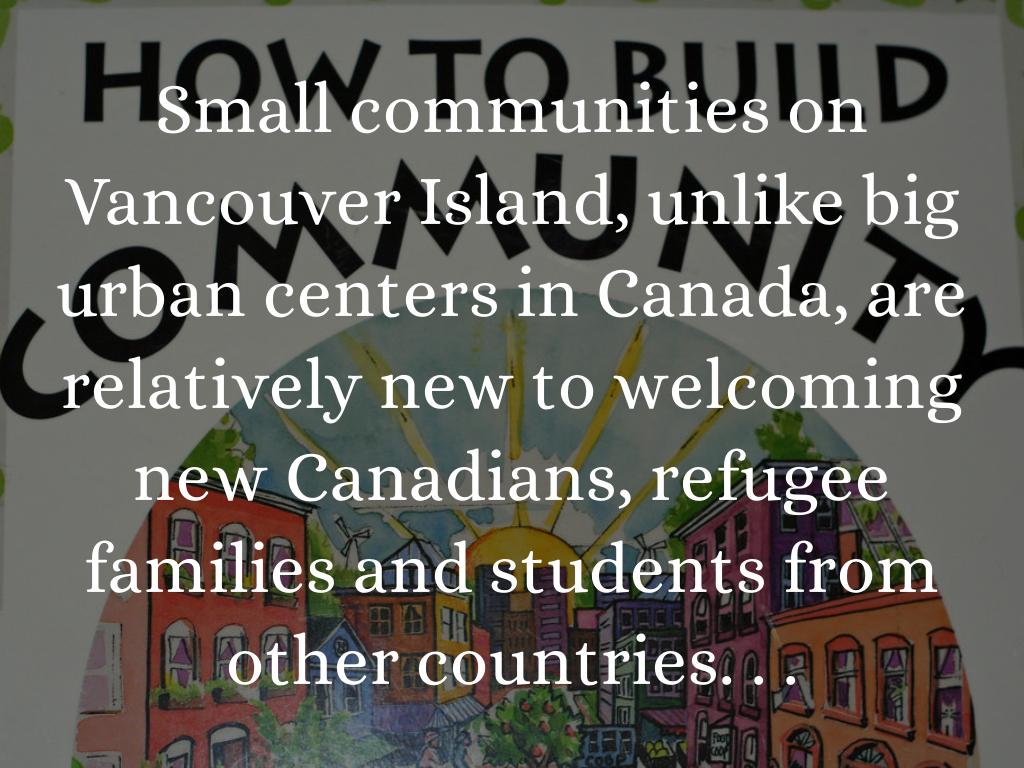 Small communities on Vancouver Island, unlike big urban centers in Canada, are relatively new to welcoming new Canadians, refugee families and students from other countries. . .