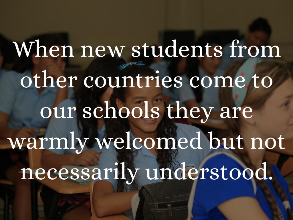 When new students from other countries come to our schools they are warmly welcomed but not necessarily understood.