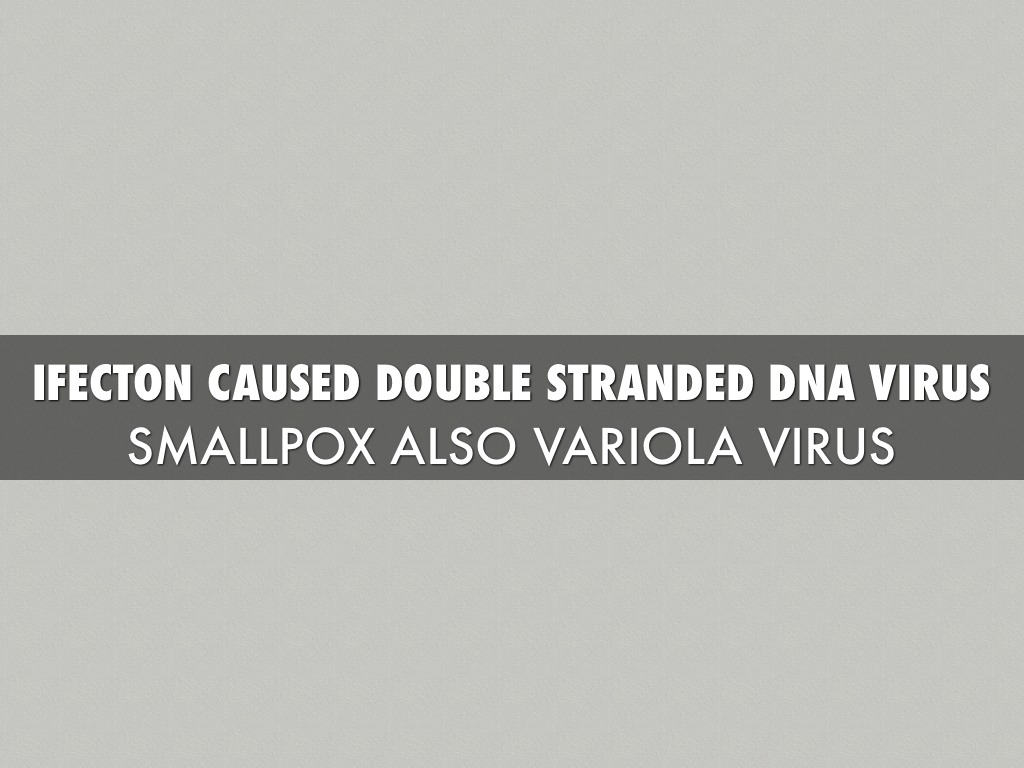 IFECTION CAUSES DOUBLE STRANDED DNA VIRUS SMALL POX ALSO VARIOLA