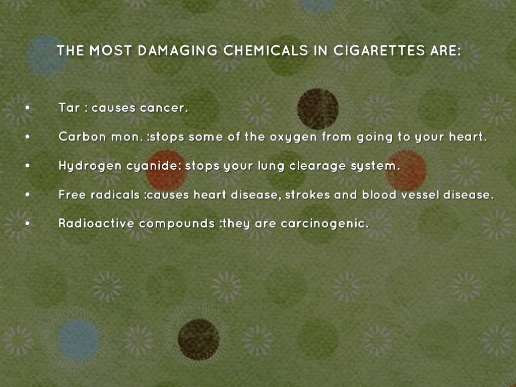 THE MOST DAMAGING CHEMICALS IN CIGARETTES ARE: