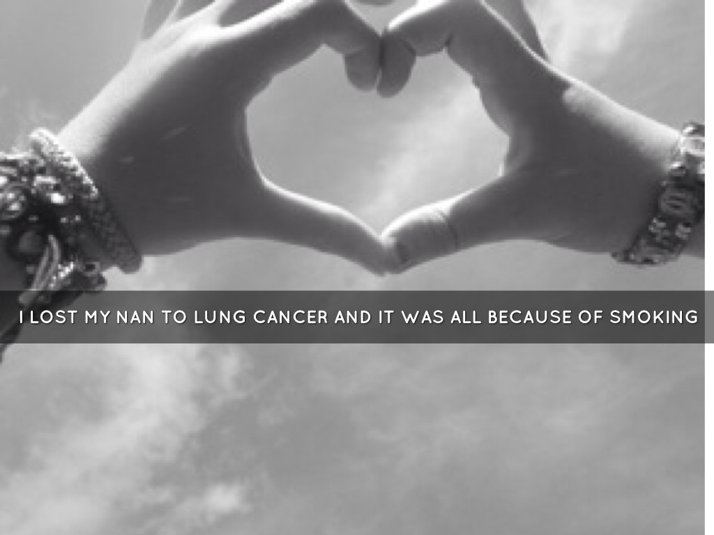 I LOST MY NAN TO LUNG CANCER AND IT WAS ALL BECAUSE OF SMOKING