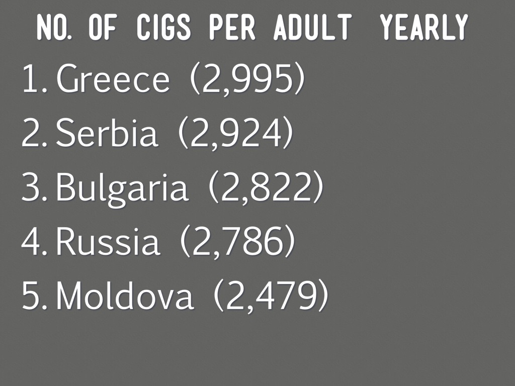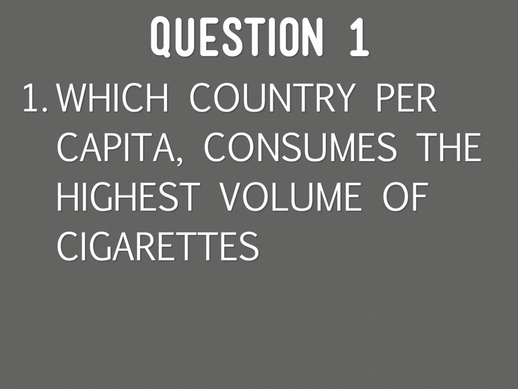 WHICH COUNTRY PER CAPITA, CONSUMES THE HIGHEST VOLUME OF CIGARETTES