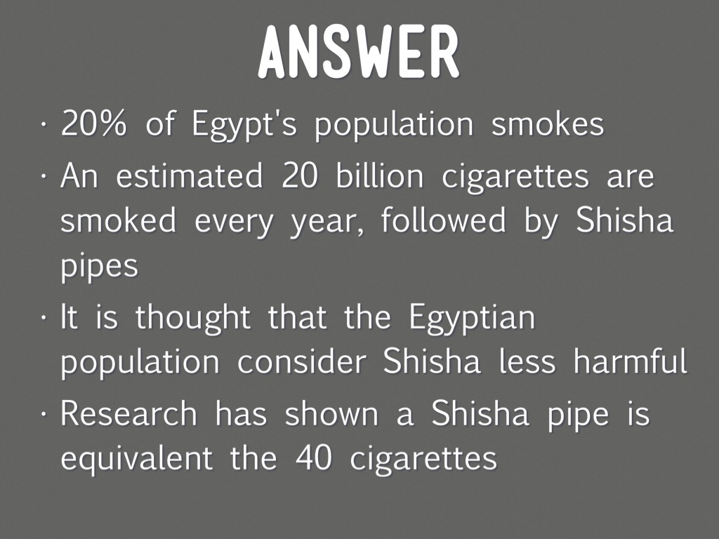 It is thought that the Egyptian population consider Shisha less harmful