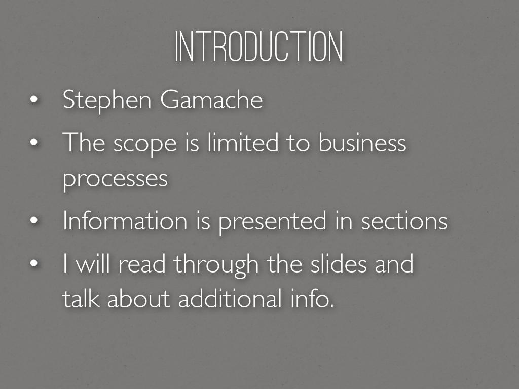 I will read through the slides and talk about additional info.