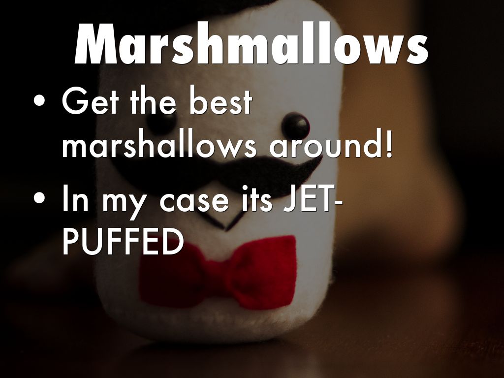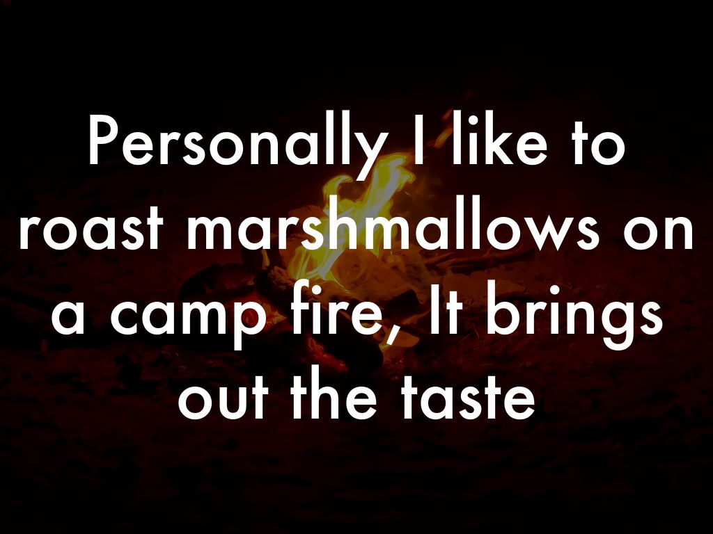 Personally I like to roast marshmallows on a camp fire, It brings out the taste