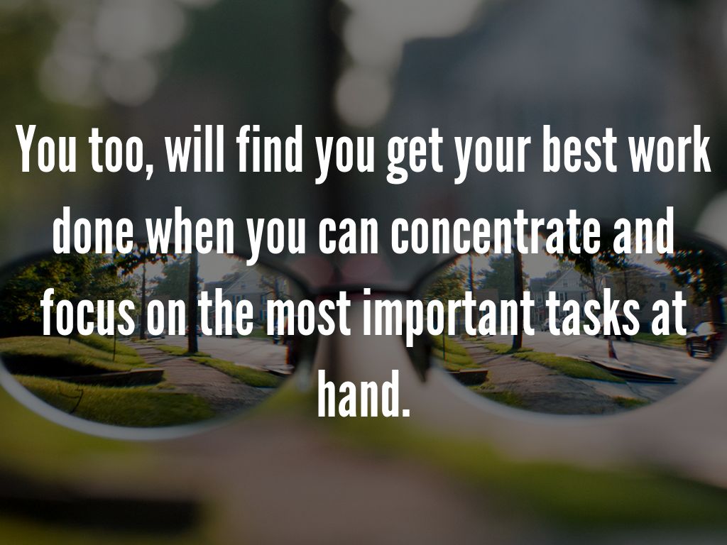 You too, will find you get your best work done when you can concentrate and focus on the most important tasks at hand.