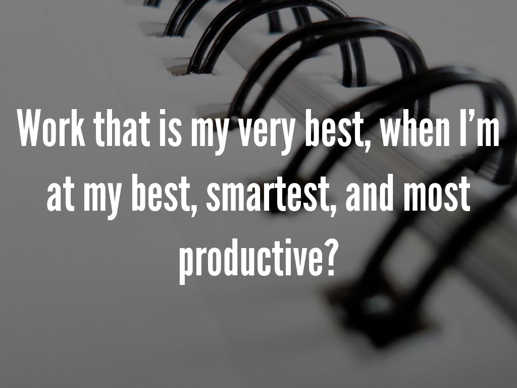 Work that is my very best, when I’m at my best, smartest, and most productive?