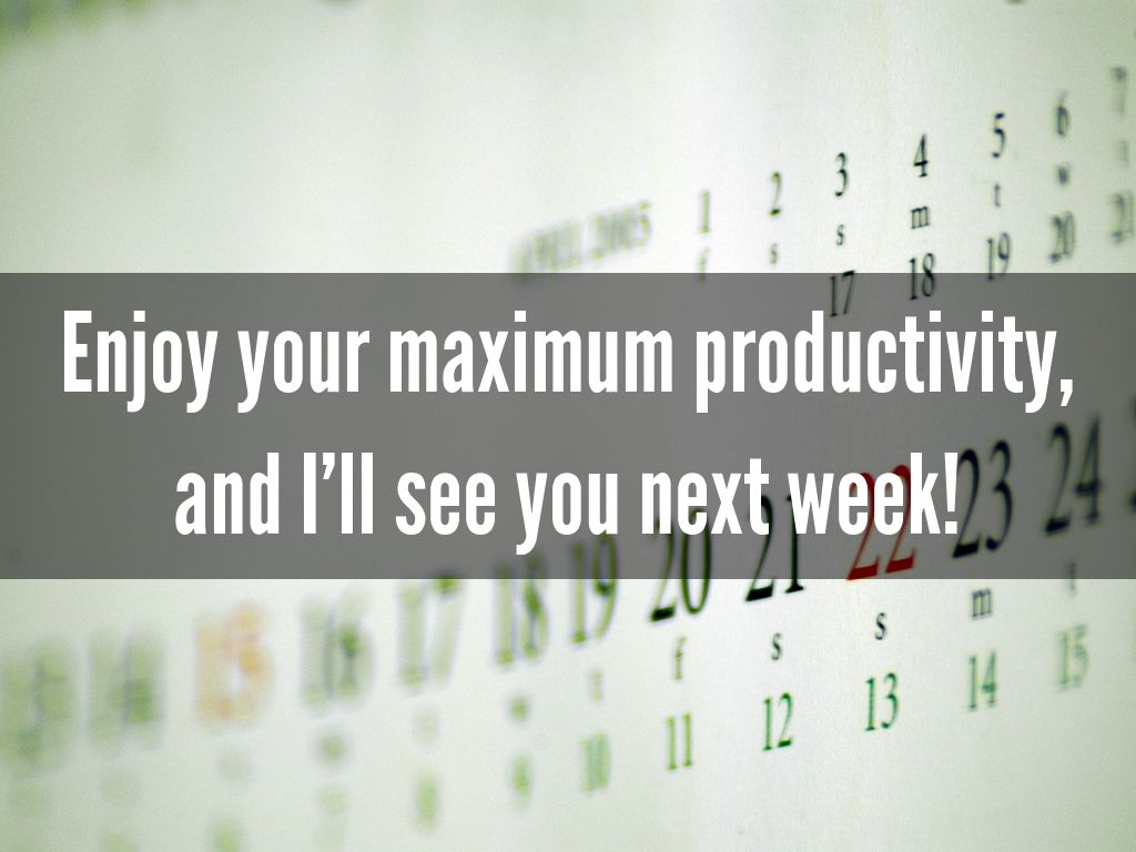 Enjoy your maximum productivity, and I’ll see you next week!