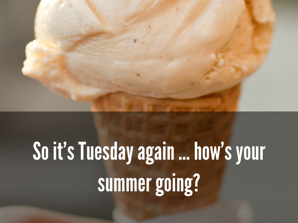 So it’s Tuesday again … how’s your summer going?