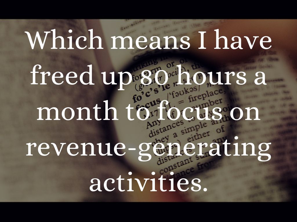Which means I have freed up 80 hours a month to focus on revenue-generating activities.