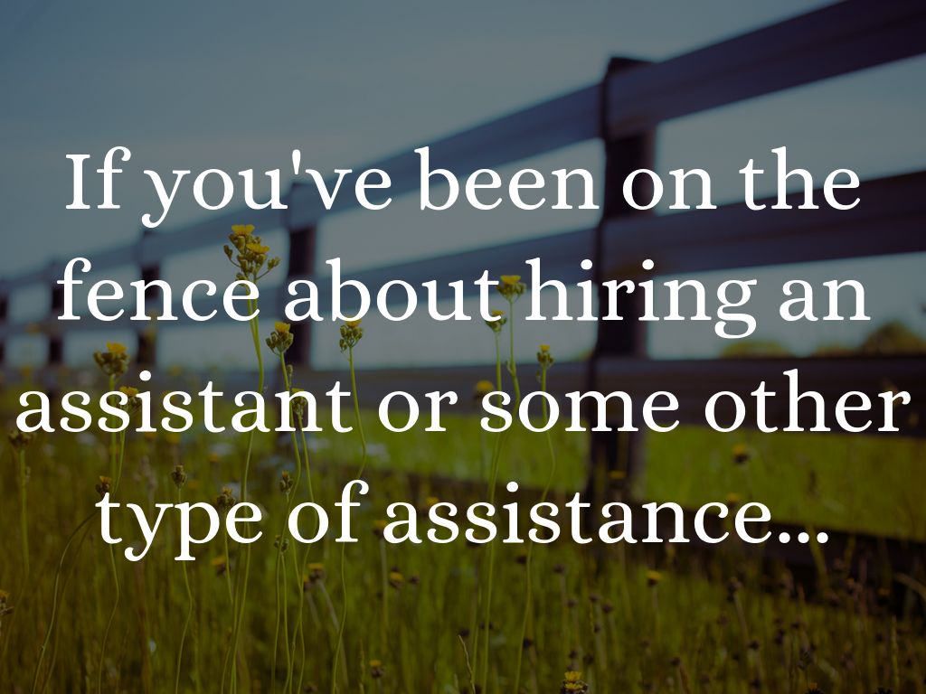 If you've been on the fence about hiring an assistant or some other type of assistance...