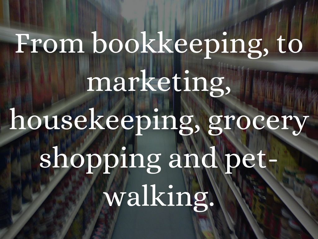 From bookkeeping, to marketing, housekeeping, grocery shopping and pet-walking.