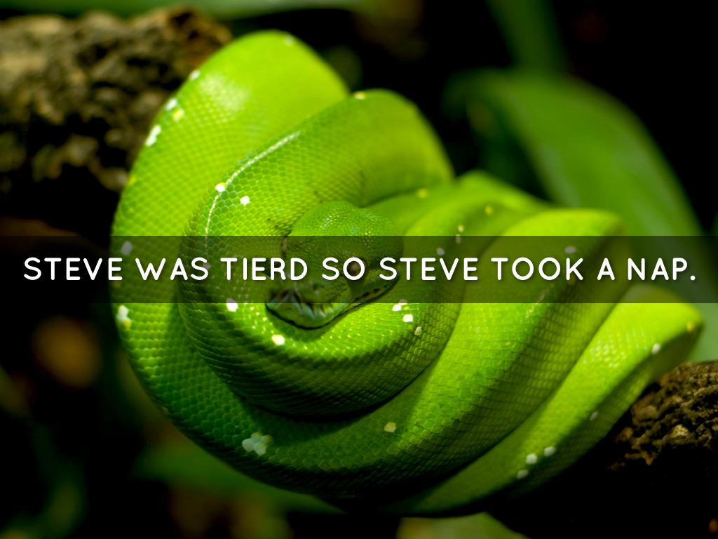 STEVE WAS TIERD SO STEVE TOOK A NAP.