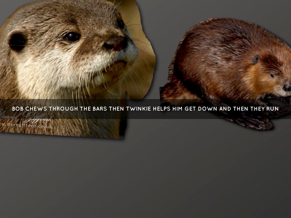 BOB CHEWS THROUGH THE BARS THEN TWINKIE HELPS HIM GET DOWN AND THEN THEY RUN