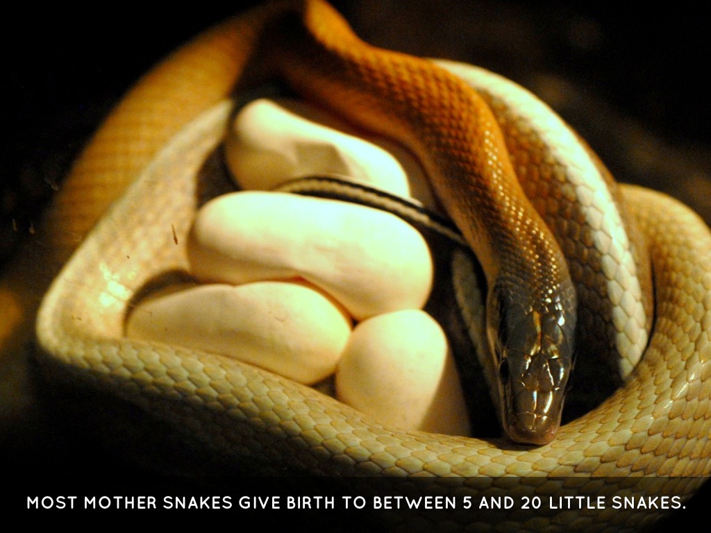 MOST MOTHER SNAKES GIVE BIRTH TO BETWEEN 5 AND 20 LITTLE SNAKES.