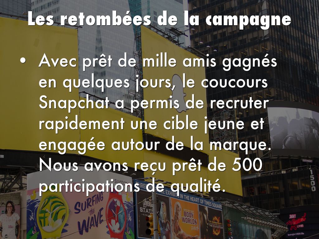 Avec prêt de mille amis gagnés en quelques jours, le coucours Snapchat a permis de recruter rapidement une cible jeune et engagée autour de la marque. Nous avons reçu prêt de 500 participations de qualité.