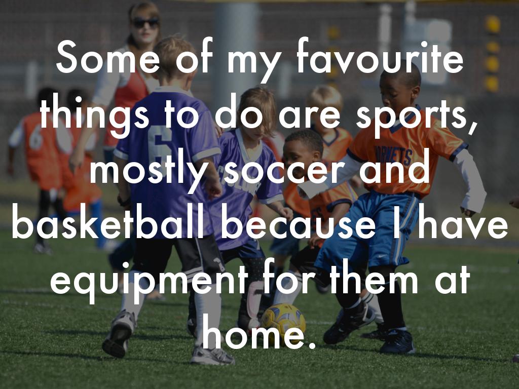 Some of my favourite things to do are sports, mostly soccer and basketball because I have equipment for them at home.
