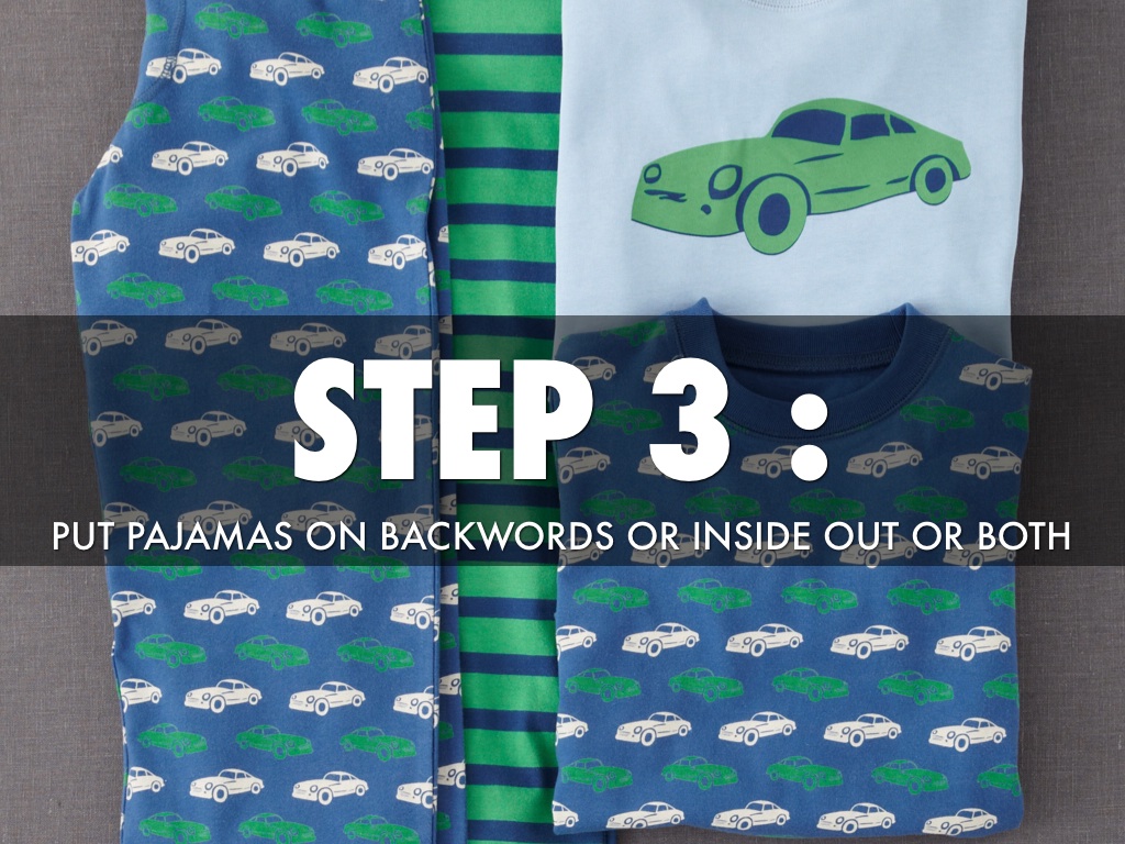 PUT PAJAMAS ON BACKWORDS OR INSIDE OUT OR BOTH