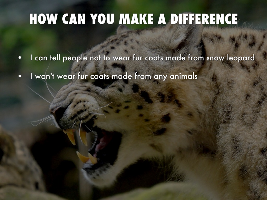 I can tell people not to wear fur coats made from snow leopard
