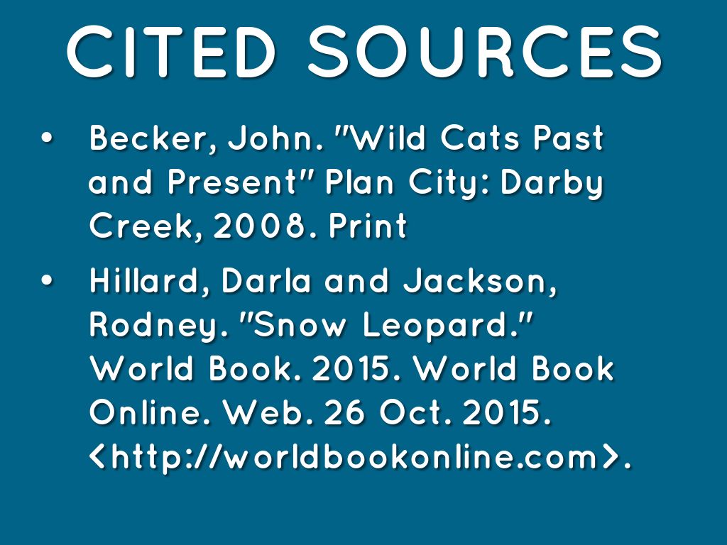 Hillard, Darla and Jackson, Rodney. "Snow Leopard." World Book. 2015. World Book Online. Web. 26 Oct. 2015.
