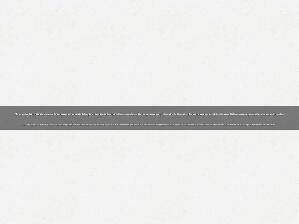"So we praise God for the glorious grace he has poured out on us who belong to his dear Son. He is so rich in kindaness and grace that he purchased our freedom with the blood of his Son and forgave our sins. He has showered his kindaness on us, along all wisdom and understanding.