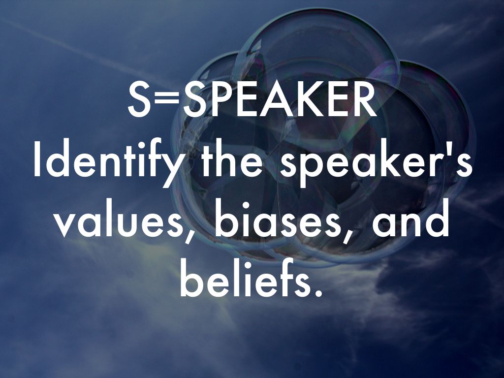 Identify the speaker's values, biases, and beliefs.