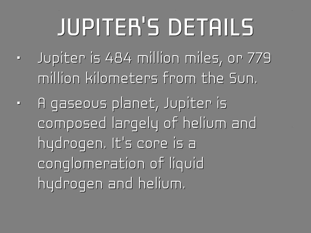 Interestingly enough, Jupiter has no concrete surface to land on as the planet itself is composed of hydrogen and helium; thus, its' surface is defined as "the point where the atmospheric pressure is equal to that of Earth."