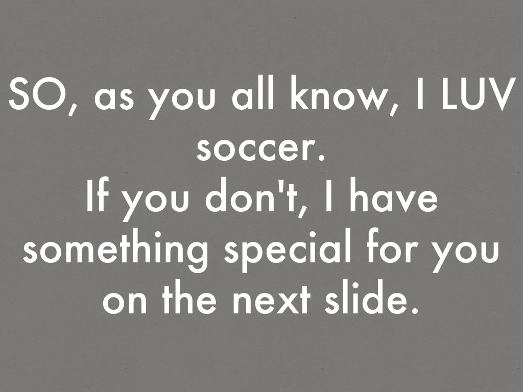 And, yeah, that's pretty mech what I want to tell you about soccer!