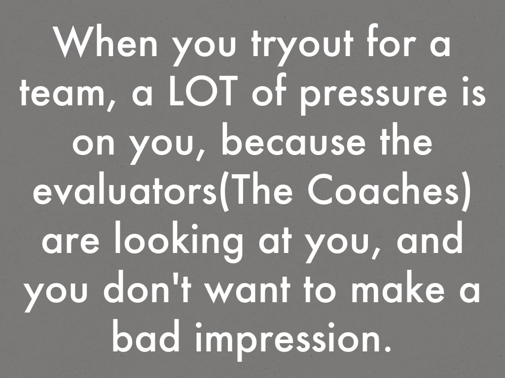 When you tryout for a team, a LOT of pressure is on you, because the evaluators(The Coaches) are looking at you, and you don't want to make a bad impression.