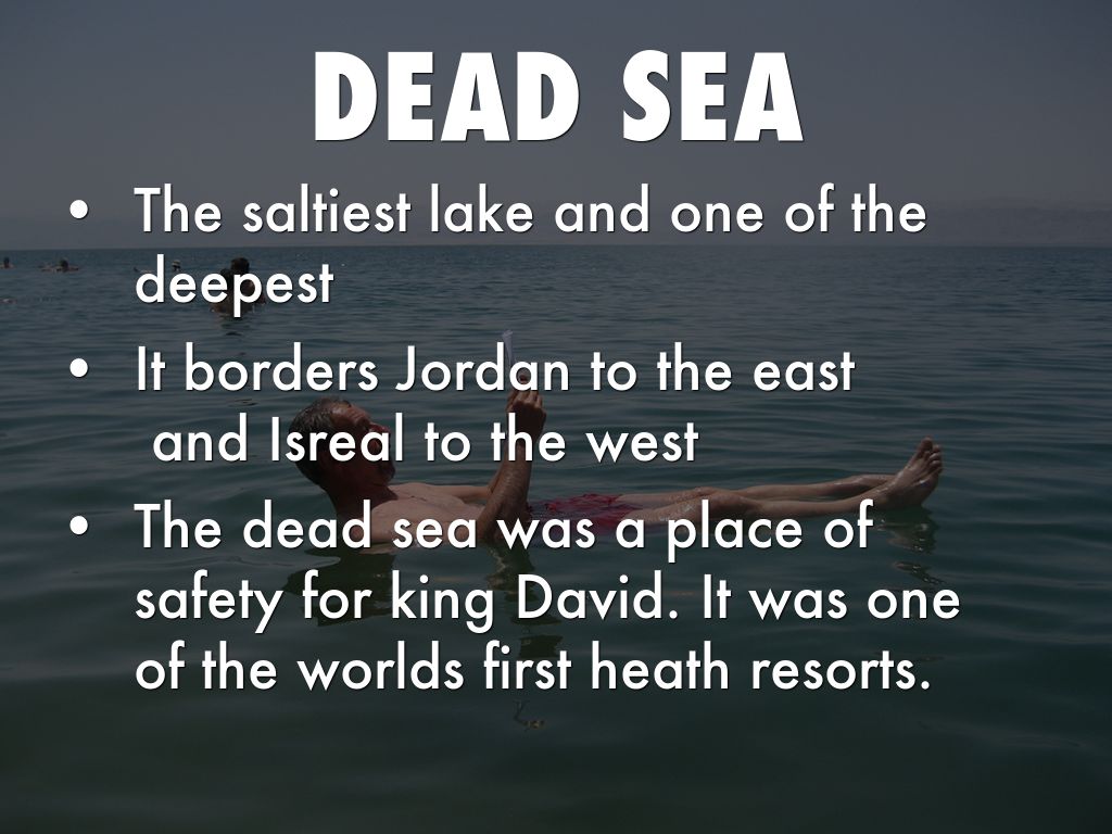 The dead sea was a place of safety for king David. It was one of the worlds first heath resorts.
