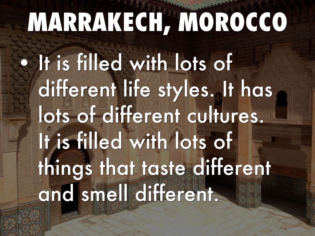 It is filled with lots of different life styles. It has lots of different cultures. It is filled with lots of things that taste different and smell different.