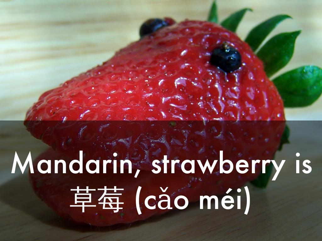 Mandarin, strawberry is 草莓 (cǎo méi)