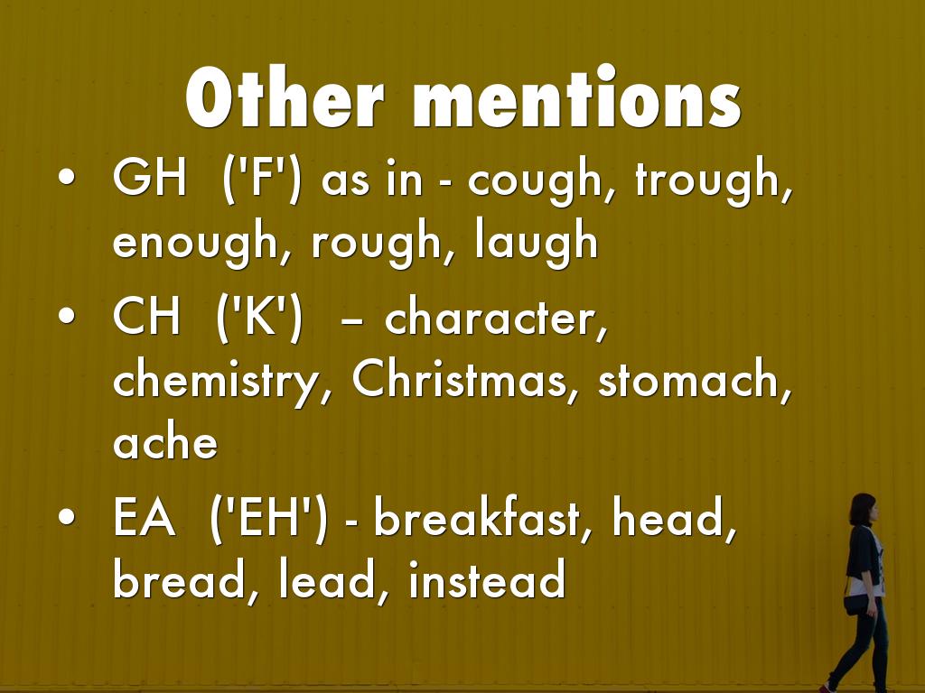 CH ('K') – character, chemistry, Christmas, stomach, ache
