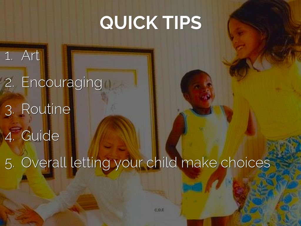 Encouraging individuality to your child, let them pick their clothes, let them listen to the music they want (appropriate for age) let them explore and ask questions