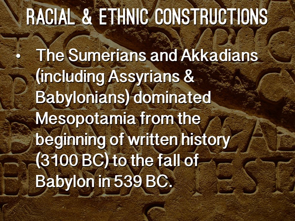 The Sumerians and Akkadians (including Assyrians & Babylonians) dominated Mesopotamia from the beginning of written history (3100 BC) to the fall of Babylon in 539 BC.
