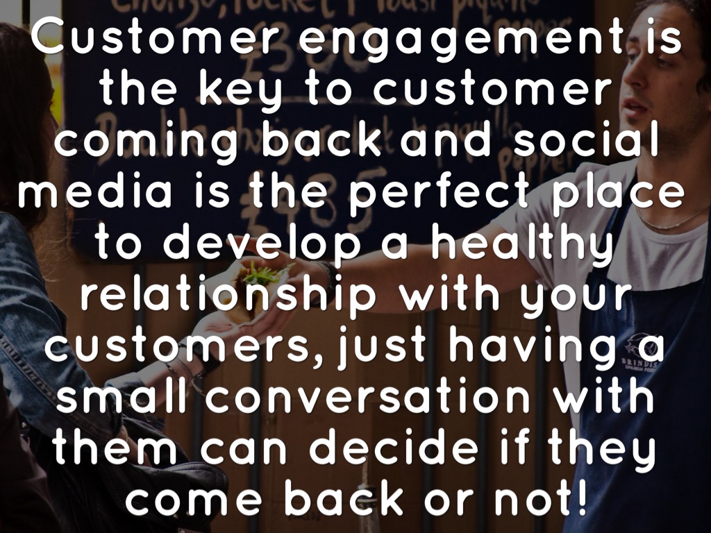 Customer engagement is the key to customer coming back and social media is the perfect place to develop a healthy relationship with your customers, just having a small conversation with them can decide if they come back or not!