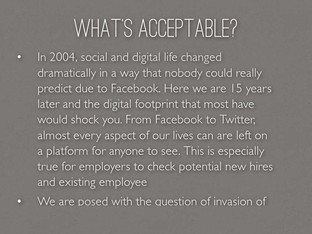 In 2004, social and digital life changed dramatically in a way that nobody could really predict due to Facebook. Here we are 15 years later and the digital footprint that most have would shock you. From Facebook to Twitter, almost every aspect of our lives can are left on a platform for anyone to see. This is especially true for employers to check potential new hires and existing employee