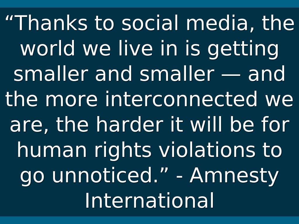 “Thanks to social media, the world we live in is getting smaller and smaller — and the more interconnected we are, the harder it will be for human rights violations to go unnoticed.” - Amnesty International