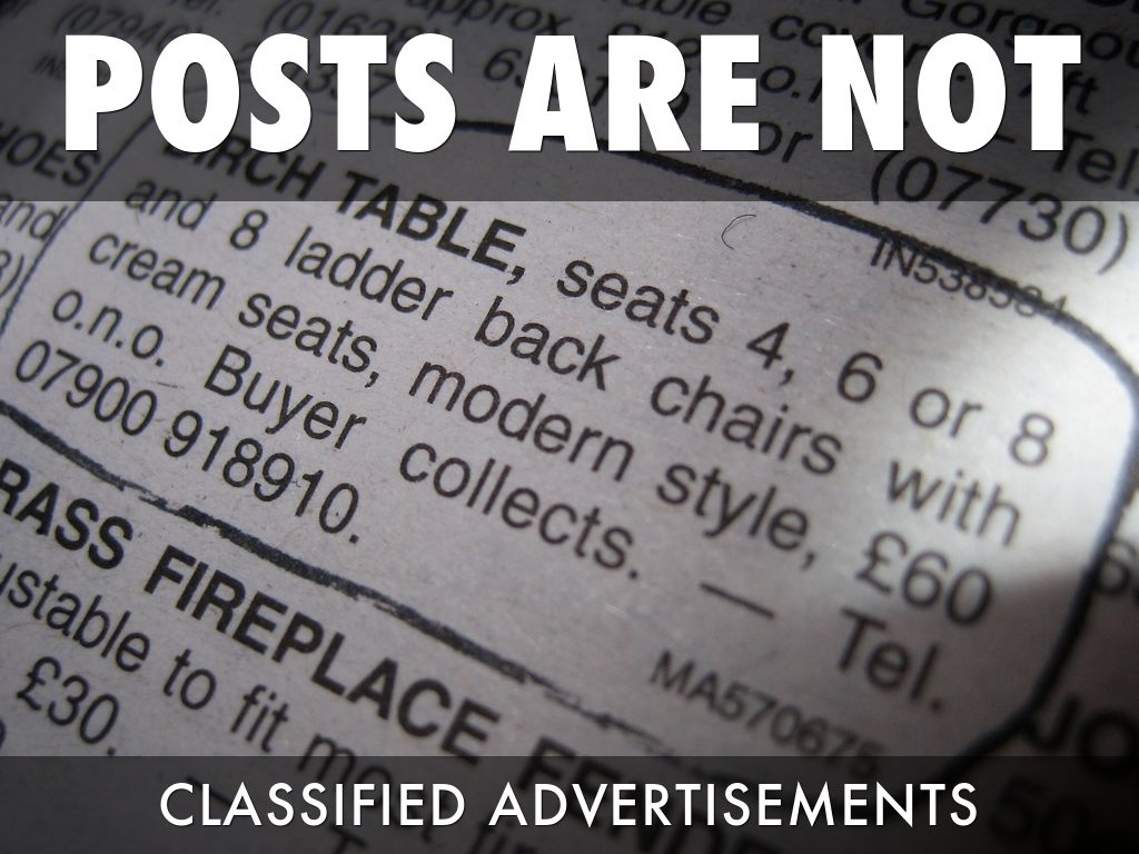 SOCIAL MEDIA IS NOT A CLASSIFIEDS AD